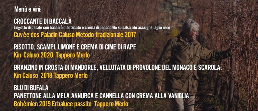 Da sommelier e vignaiolo innamorato della sua terra, il Canavese, Tappero Merlo condurrà alla scoperta dell’Erbaluce di Caluso, celebrato come vitigno dell’anno 2023 del Piemonte, e delle grandi potenzialità per la valorizzazione culturale e lo sviluppo sostenibile delle realtà rurali italiane. Un menù ricco, pensato per suggellare in un ideale matrimonio i prodotti campani e i vini del nord.
