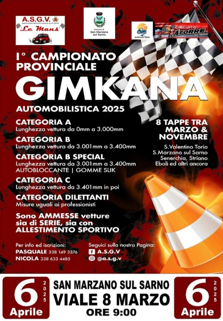 Presentata questa mattina, presso la Casa Comunale di San Marzano sul Sarno, la tappa marzanese del campionato provinciale di Gimkana automobilistica, un evento coordinato e promosso da Pasquale De Vivo e dal suo team.