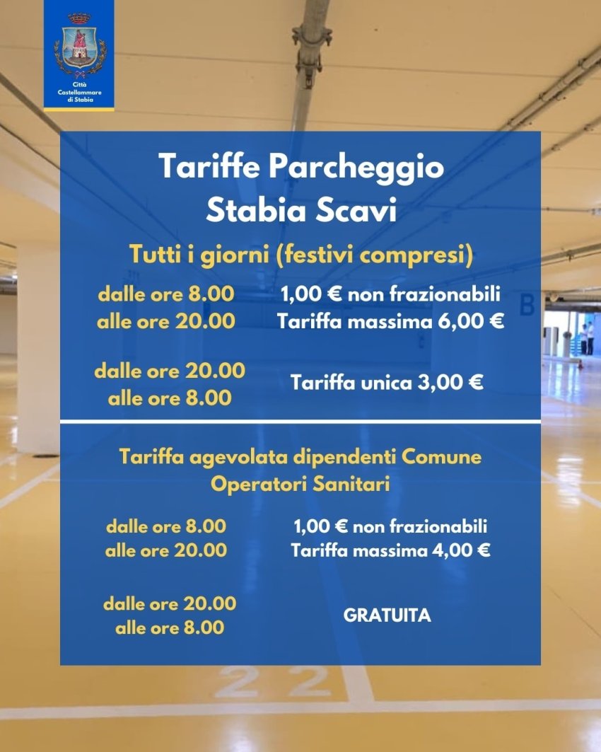 "È stato consegnato al Comune di Castellammare, in via temporanea, il nuovo parcheggio realizzato da EAV nella stazione Stabia Scavi, che sorge nei pressi della Clinica Villa Stabia e dell'Ospedale San Leonardo, con ben 150 posti auto. Un’opera attesa da tempo. Fino a domenica 21 settembre l’utilizzo sarà gratuito, così da permettere a tutti di conoscere il parcheggio e iniziare a utilizzarlo. Un passo concreto per migliorare la mobilità e la vivibilità della nostra Castellammare di Stabia".