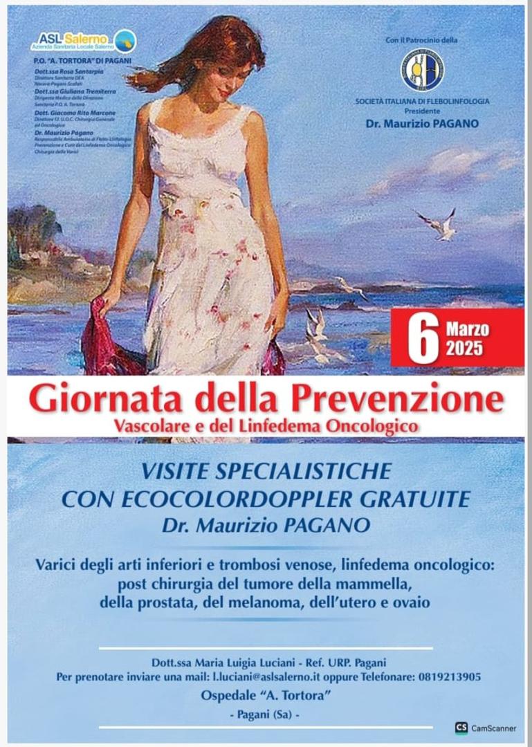 In occasione della giornata mondiale del linfedema, l’Asl Salerno, con il patrocinio della Società italiana di Flebo-Linfologia (SIFL), promuove la giornata della prevenzione vascolare e del linfedema oncologico all’ospedale “Andrea Tortora” di Pagani.