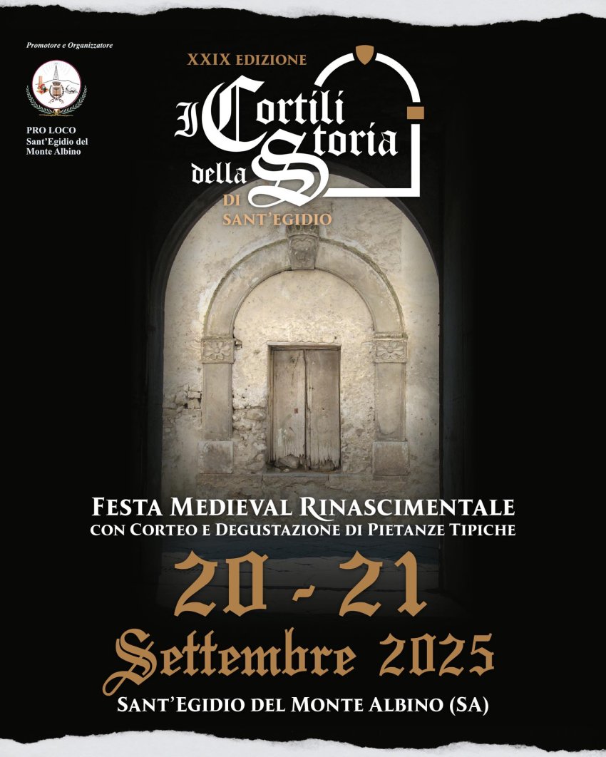 Ritorna, nel prossimo weekend, l'appuntamento con la magia de "I Cortili della Storia". L'evento, promosso come sempre dalla Pro Loco di Sant'Egidio del Monte Albino, giunge nel 2025 alla sua 29esima edizione. Due giorni - il 20 e 21 settembre - che riporteranno indietro nel tempo lo splendido borgo antico di Sant'Egidio, con cortei storici, spettacoli, antiche arti, sapori unici. Un’esperienza unica, che unisce tradizione, storia e comunità.