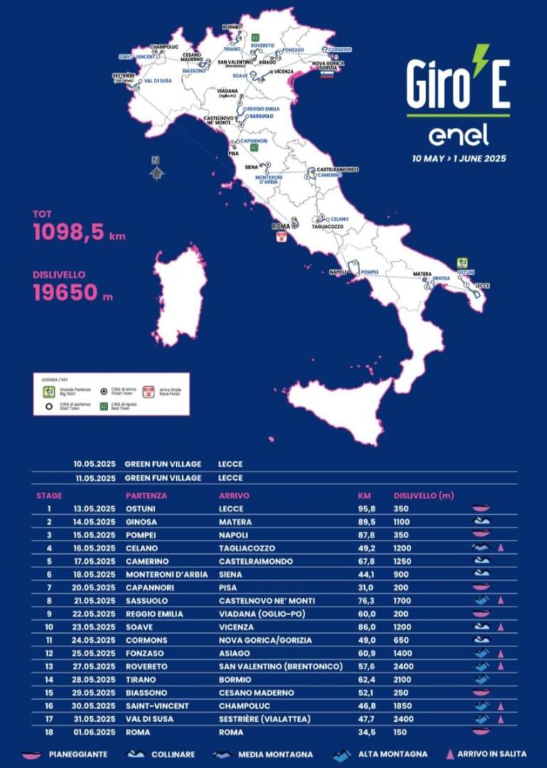 L'edizione 2025 del "Giro-E" prevede una partenza di tappa da Pompei