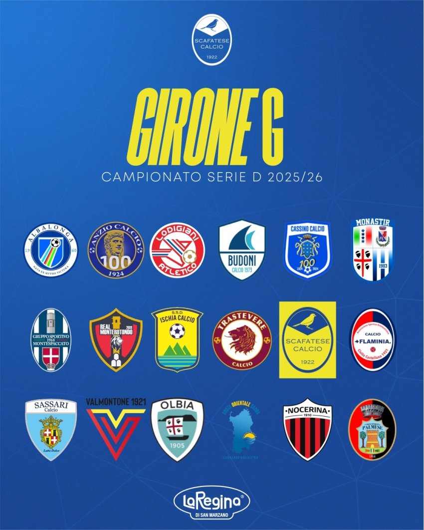 Sono stati svelati dalla Lega Nazionale Dilettanti i 9 gironi del campionato 25/26, al via il prossimo 7 settembre. Nel dettaglio, il Girone G (Campania, Sardegna, Lazio): Ischia, Nocerina, Scafatese, Palmese, Budoni, Cos Sarrabus Ogliastra, Monastir, Olbia, Sassari Lattedolce, Albalonga, Anzio, Atletico Lodigiani, Cassino, Flaminia Civitacastellana, Montespaccato, Real Monterotondo, Trastevere, Valmontone.